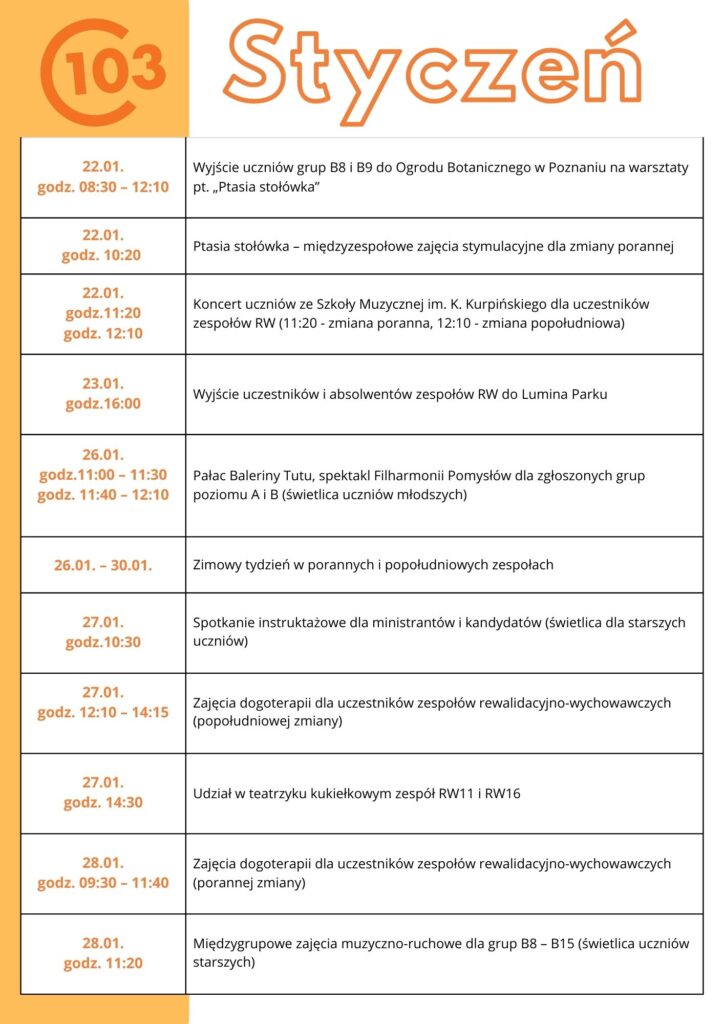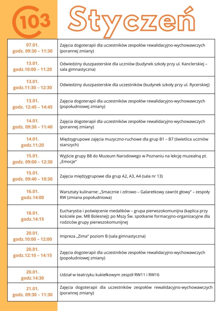 harmonogram styczeń